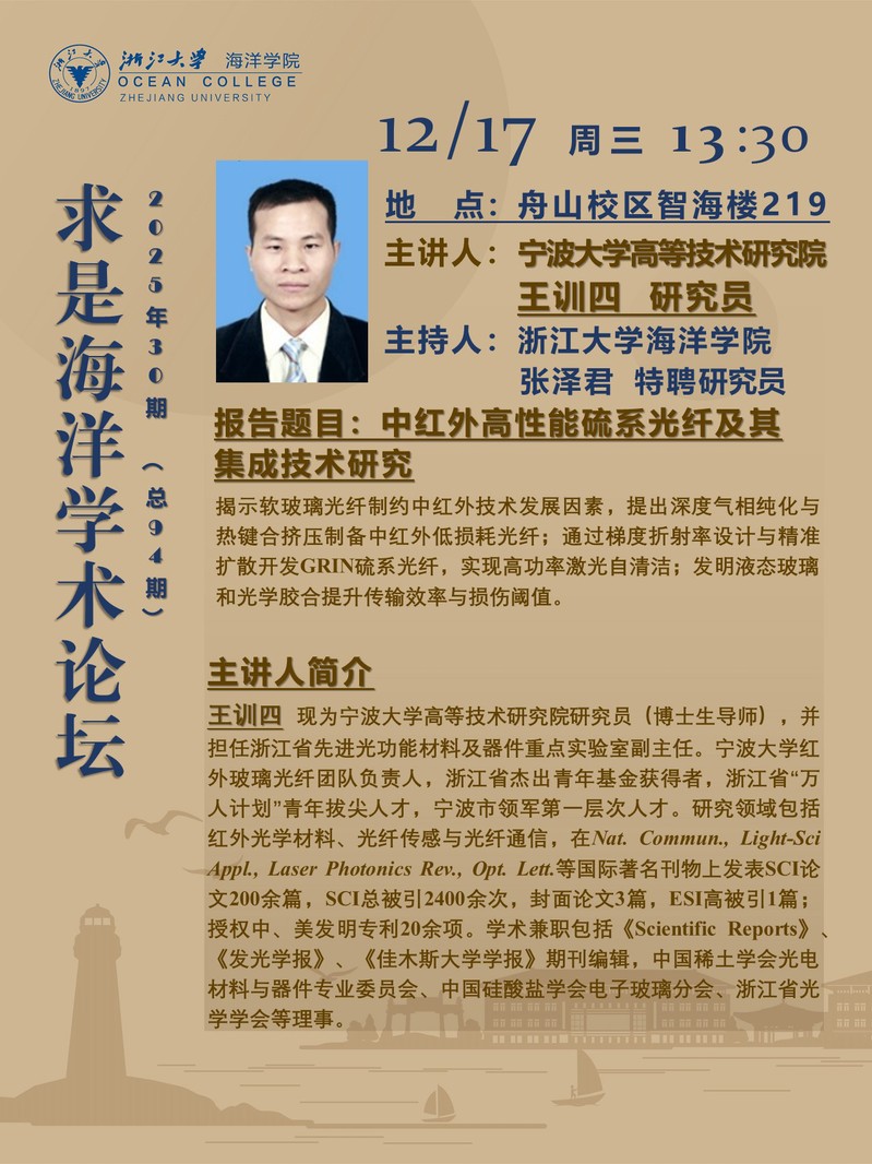 求是海洋学术论坛2025年30期(总94期)——中红外高性能硫系光纤及...